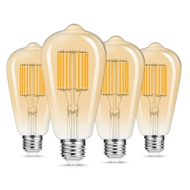 St64 Led Light Bulbs 10w 100w Equivalent 1000lm Amber Glass 2700k Warm White 4 Pack Walmart Ca
